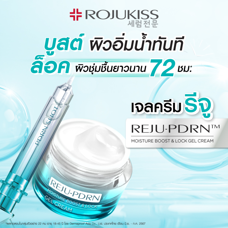 ROJUKISS “REJU-PDRN MOISTURE BOOST & LOCK GEL CREAM” เจลครีมรีจู บูสต์ผิวอิ่มน้ำทันที ล็อคความชุ่มชื้นยาวนาน ฟื้นฟูผิวล้ำลึก พร้อมเสริมเกราะป้องกันผิวให้แข็งแรง ไม่ระคายเคืองง่าย วางจำหน่ายแล้วที่ Watsons, 7-Eleven หรือสั่งซื้อทางออนไลน์ได้ที่ Rojukiss.official ทั้งใน Shopee และ Lazada