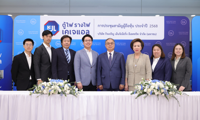 นายการุณย์ สุจิวโรดม (ที่ 4 จากขวา) ประธานกรรมการ นายเกษมสันต์ สุจิวโรดม (ที่ 4 จากซ้าย) ประธานเจ้าหน้าที่บริหาร บริษัท กิจเจริญ เอ็นจิเนียริ่ง อีเลคทริค จำกัด (มหาชน) หรือ KJL พร้อมด้วยคณะกรรมการบริษัทฯ เข้าร่วมการประชุมสามัญผู้ถือหุ้น ประจำปี 2568 ในรูปแบบ Hybrid (Physical และ e-AGM) การประชุมผ่านสื่ออิเล็กทรอนิกส์ เพื่อชี้แจงถึงการดำเนินงานในปีที่ผ่านมา และทิศทางการเติบโตของบริษัทฯ ในด้านการขยายกำลังการผลิตและการขยายช่องทางการจัดจำหน่าย รวมไปถึงการขยายธุรกิจให้ครอบคลุมทั่วประเทศ โดยที่ประชุมผู้ถือหุ้นมีมติอนุมัติจ่ายปันผลเป็นเงินสด ในอัตราหุ้นละ 0.35 บาท และกำหนดจ่ายเงินปันผลในวันที่ 7 พฤษภาคม 2568 ณ ห้องประชุมของบริษัท กิจเจริญ เอ็นจิเนียริ่ง อีเลคทริค จำกัด (มหาชน) เมื่อเร็ว ๆ นี้